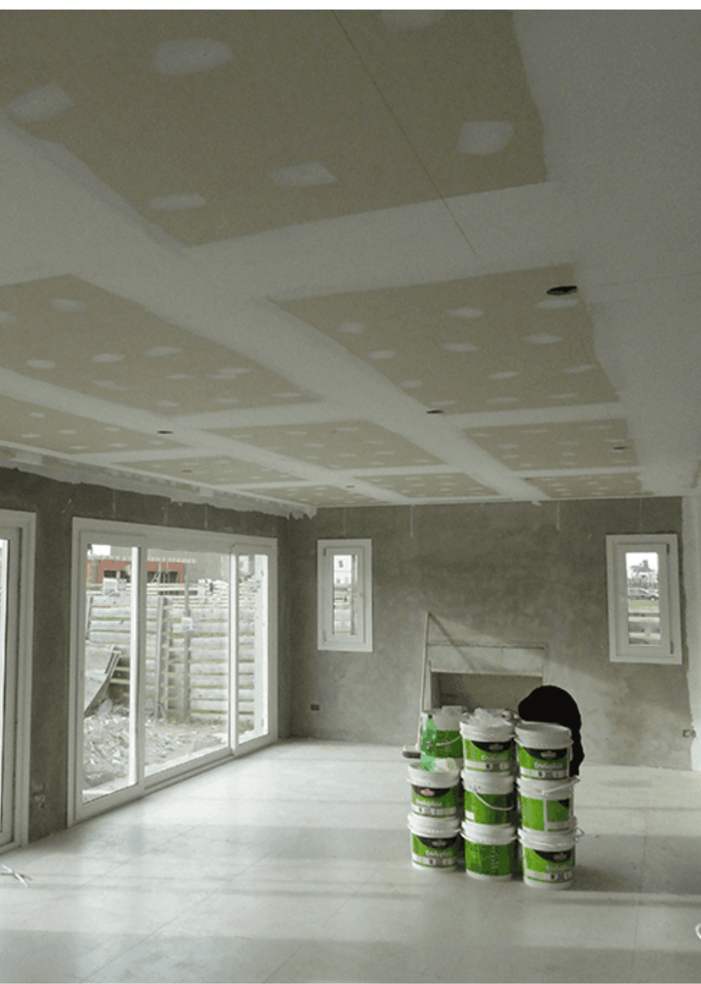 Renovación de muros y cielorrasos utilizando materiales de alta calidad y técnicas de protección de mobiliario para acabados impecables en el hogar.